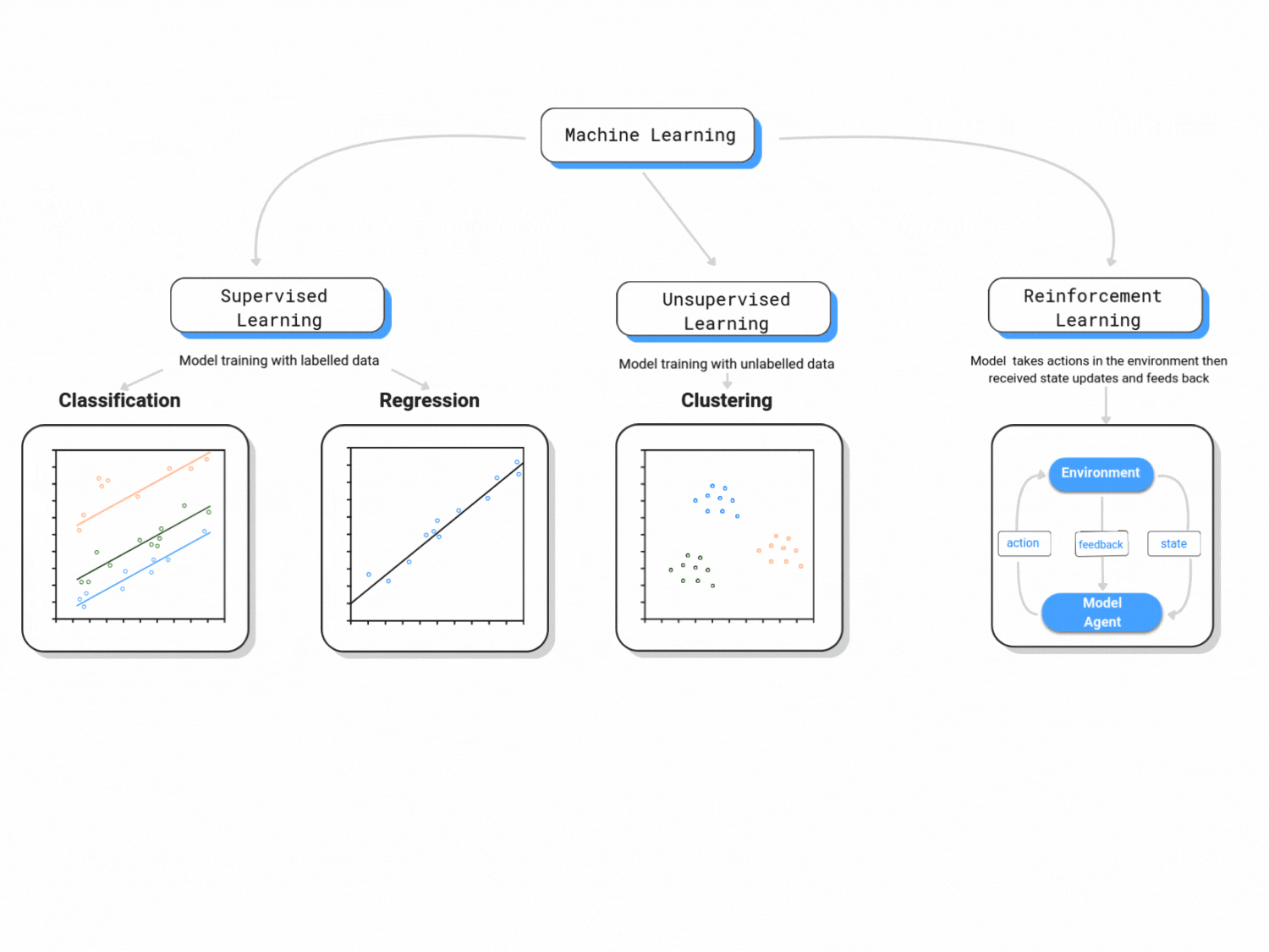 Machine learning is classified in three major branches:
