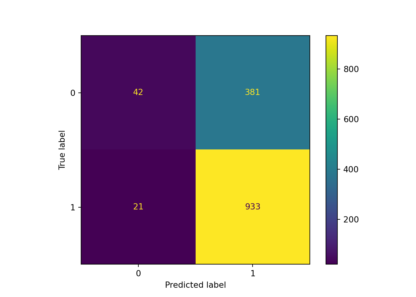 False Negatives (FN): 381 (actual = 0, predicted = 1)